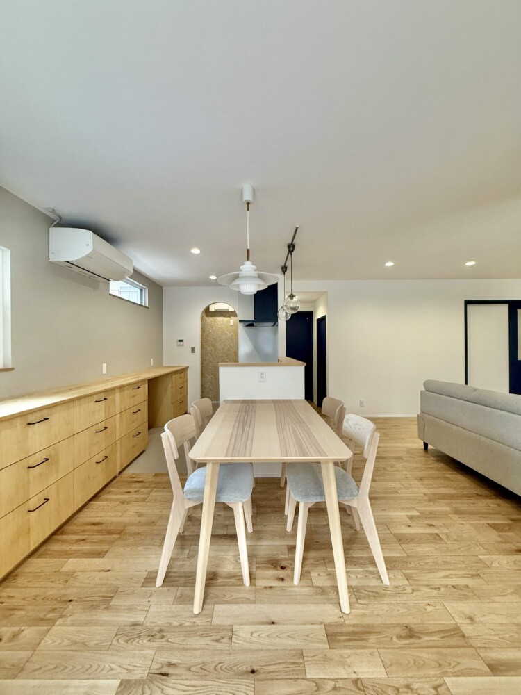 造作家具や無垢材、板張りの壁など、「既製品に頼らないデザイン」を得意としながらも、経験と段取りによって手間を抑え、建売に近い価格帯を実現しています。