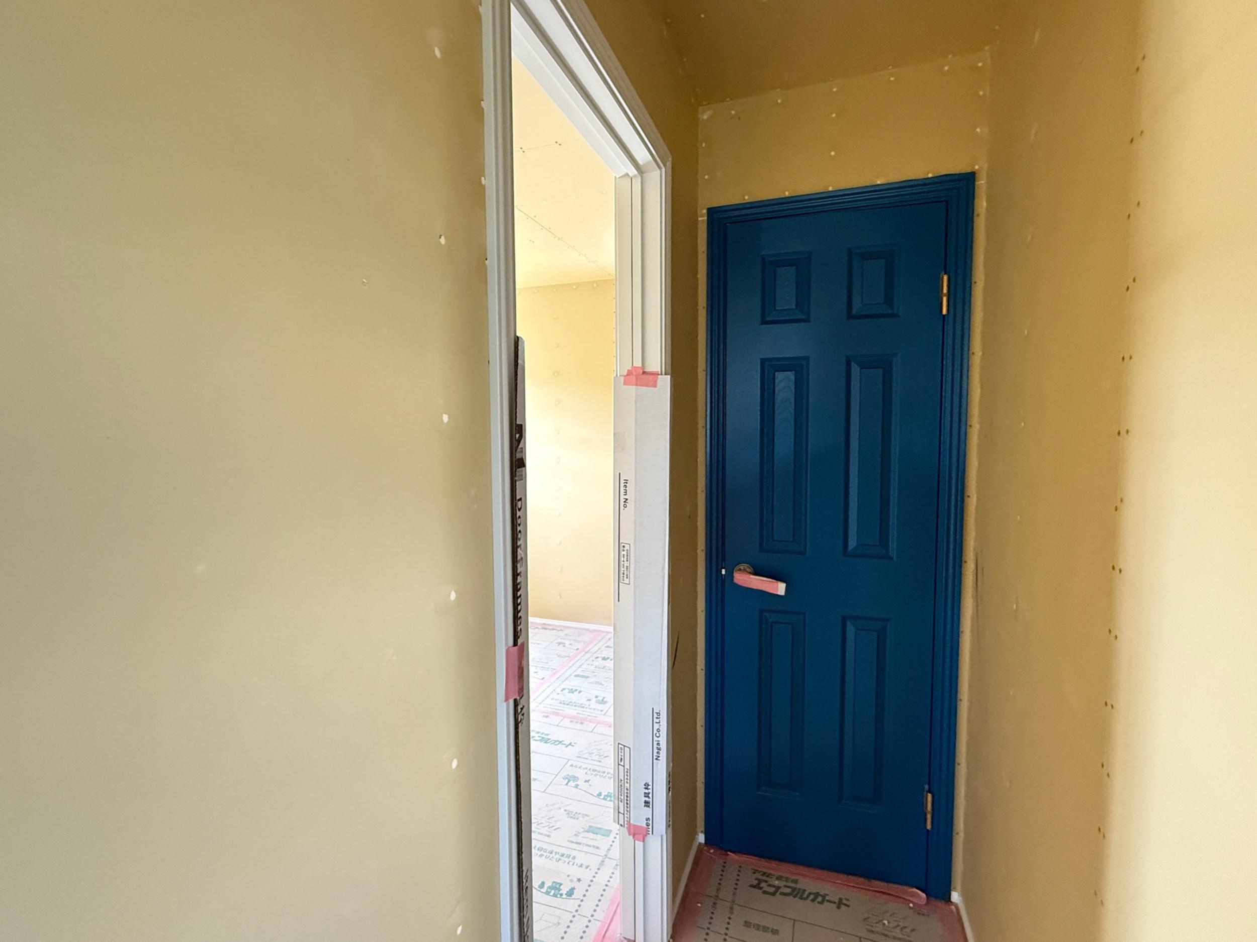 二階のトイレドアはダークブルー、
