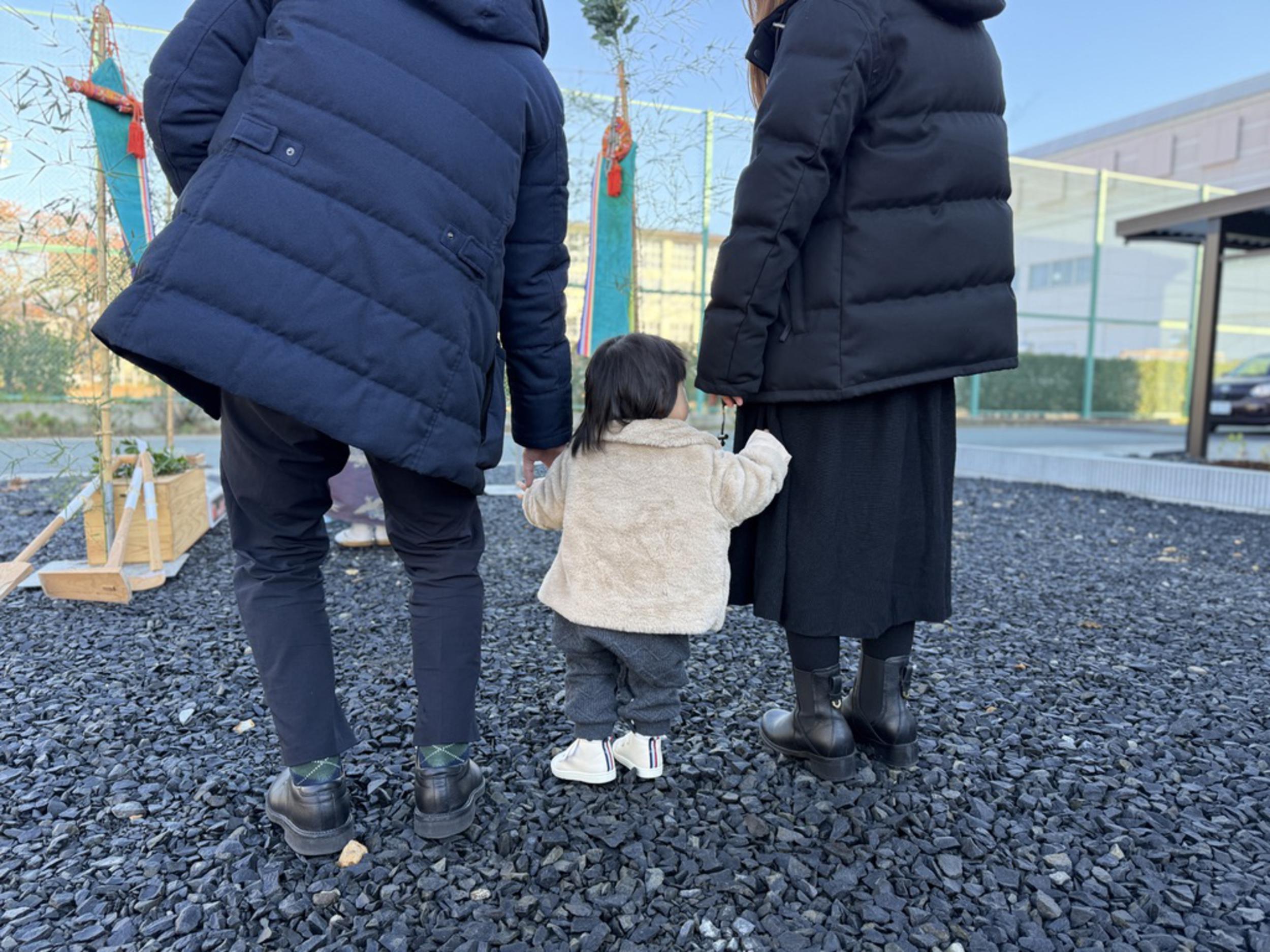 ご家族で工事の第一手となる鍬入れを行い、
